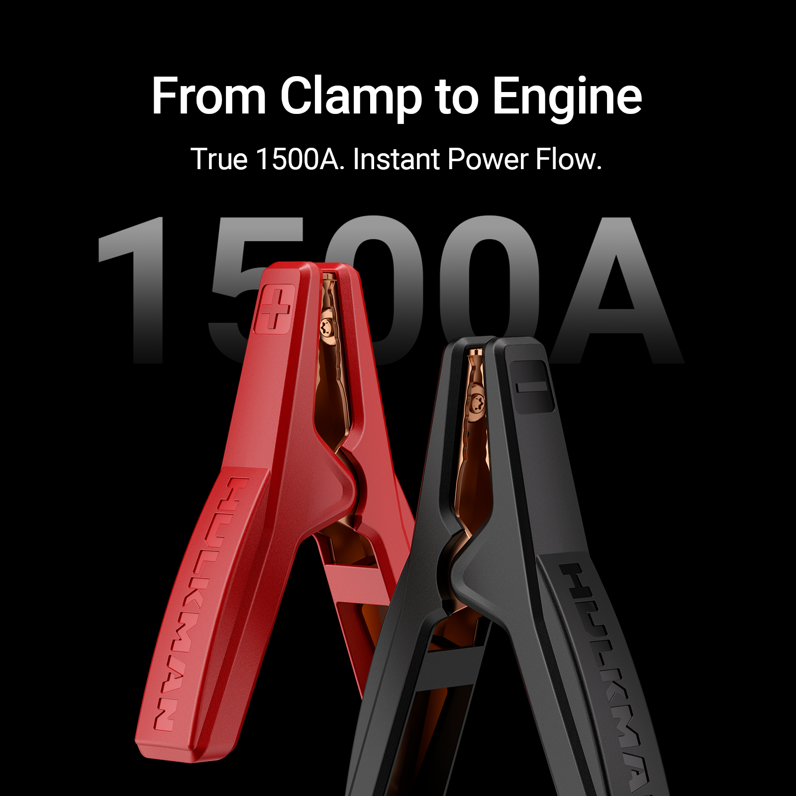 • [True 1500A Peak Power] Engineered for real performance, not inflated numbers. This car jump starter delivers true 1500A from the clamps—enough to start 7.5L Gas or 4.5L Diesel engines. From cars to trucks, boats, or tractors, it gets you moving again in seconds.
